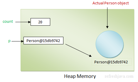 Note : The reference(Person@15db9742) of object p given in above image is not the exact memory address.